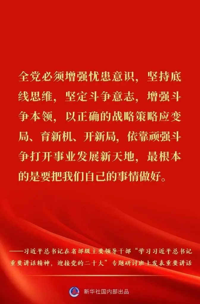 省部级主要领导干部“学习习近平总书记重要讲话精神,迎接党的二十大”专题研讨班26日至27日在京举行。中共中央总书记、国家主席、中央军委主席习近平发表重要讲话。一起来看金句速览。